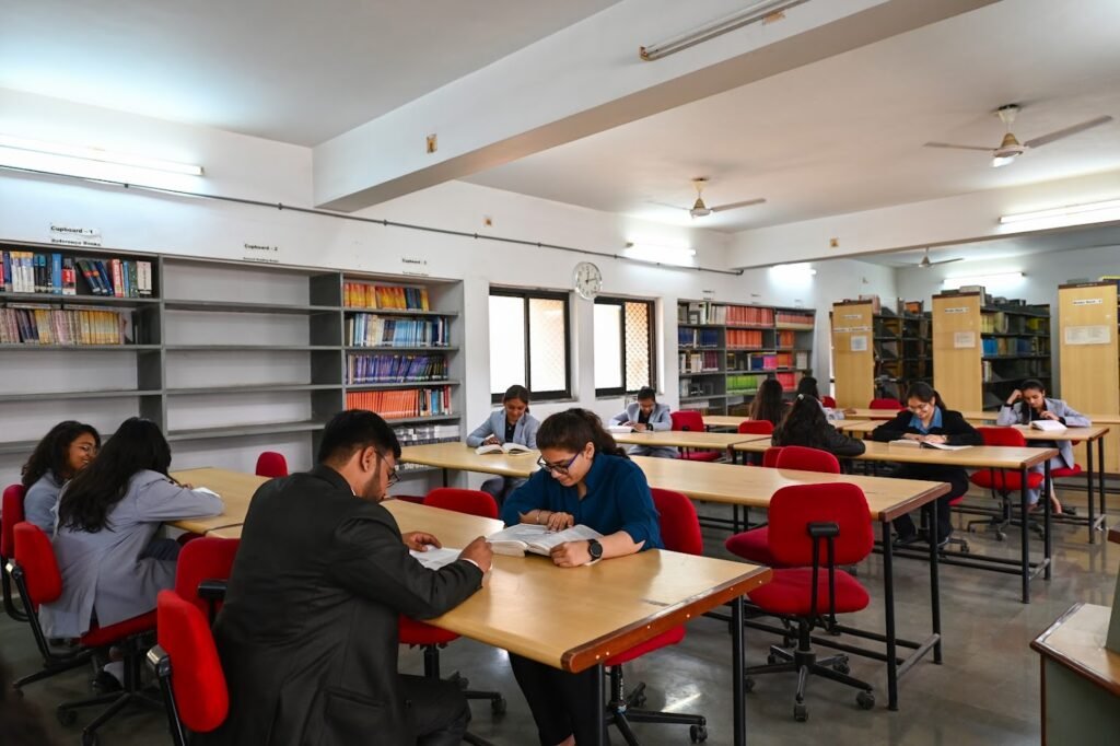 The SJPI has Central Library housed in a spacious two-storied building. It is spread over 550 square meters area having a seating capacity for more than 200 students. In addition to the Reading Facilities on Library Premises, the Institute has special Reading cubical rooms spread over 80 square meters for serious reading.